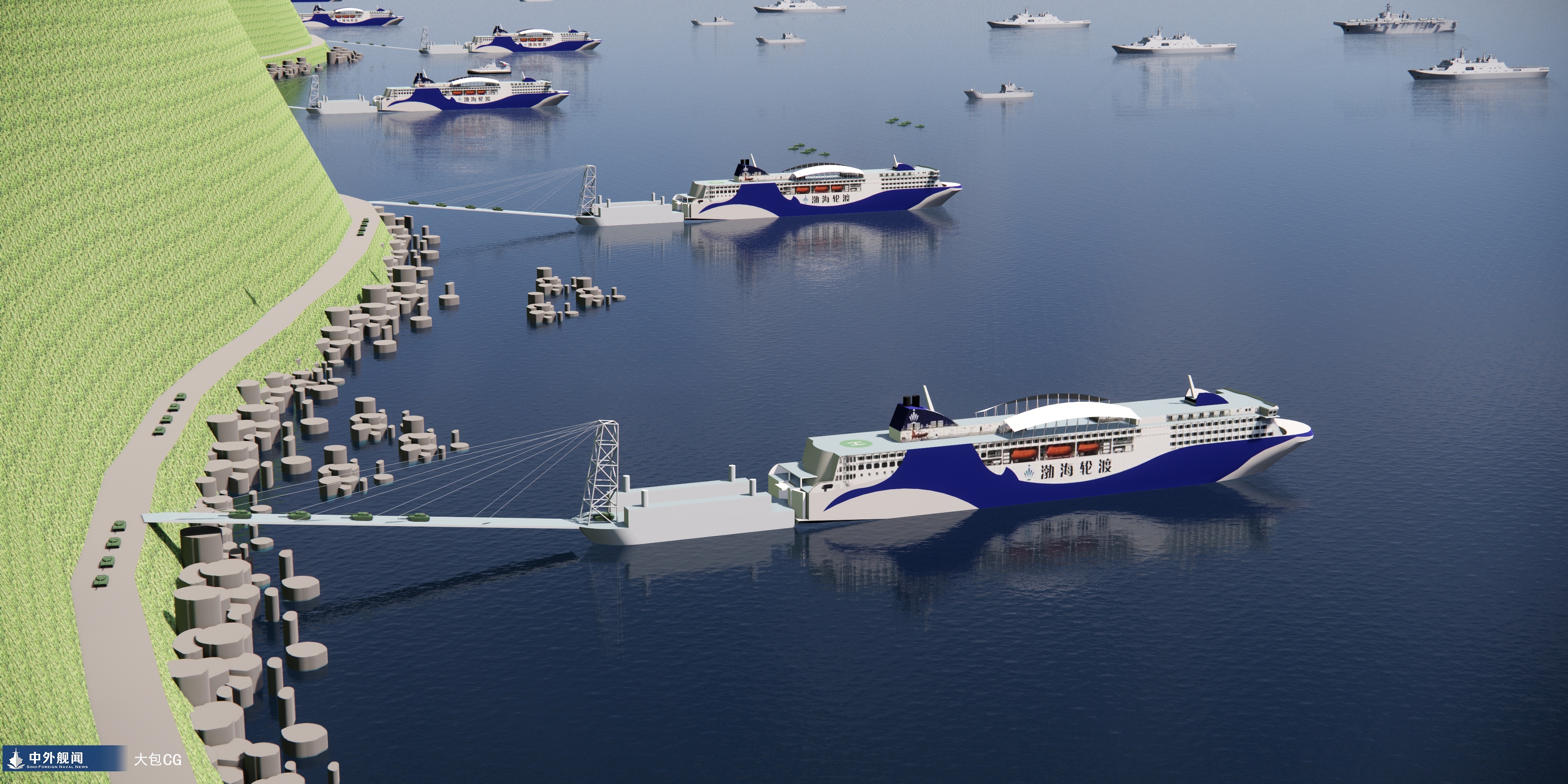 Damien Symon, uznávaný obranný analytik, ktorý preskúmal zdieľané materiály, upozornil na ich vhodnosť na pripojenie k veľkej flotile čínskych civilných trajektov. Čínske trajekty typu RORO (roll-on/roll-off) sú pripravené na prepravu vojenských vozidiel vrátane ťažkých hlavných bojových tankov. V tejto úlohe sa pravidelne cvičia.