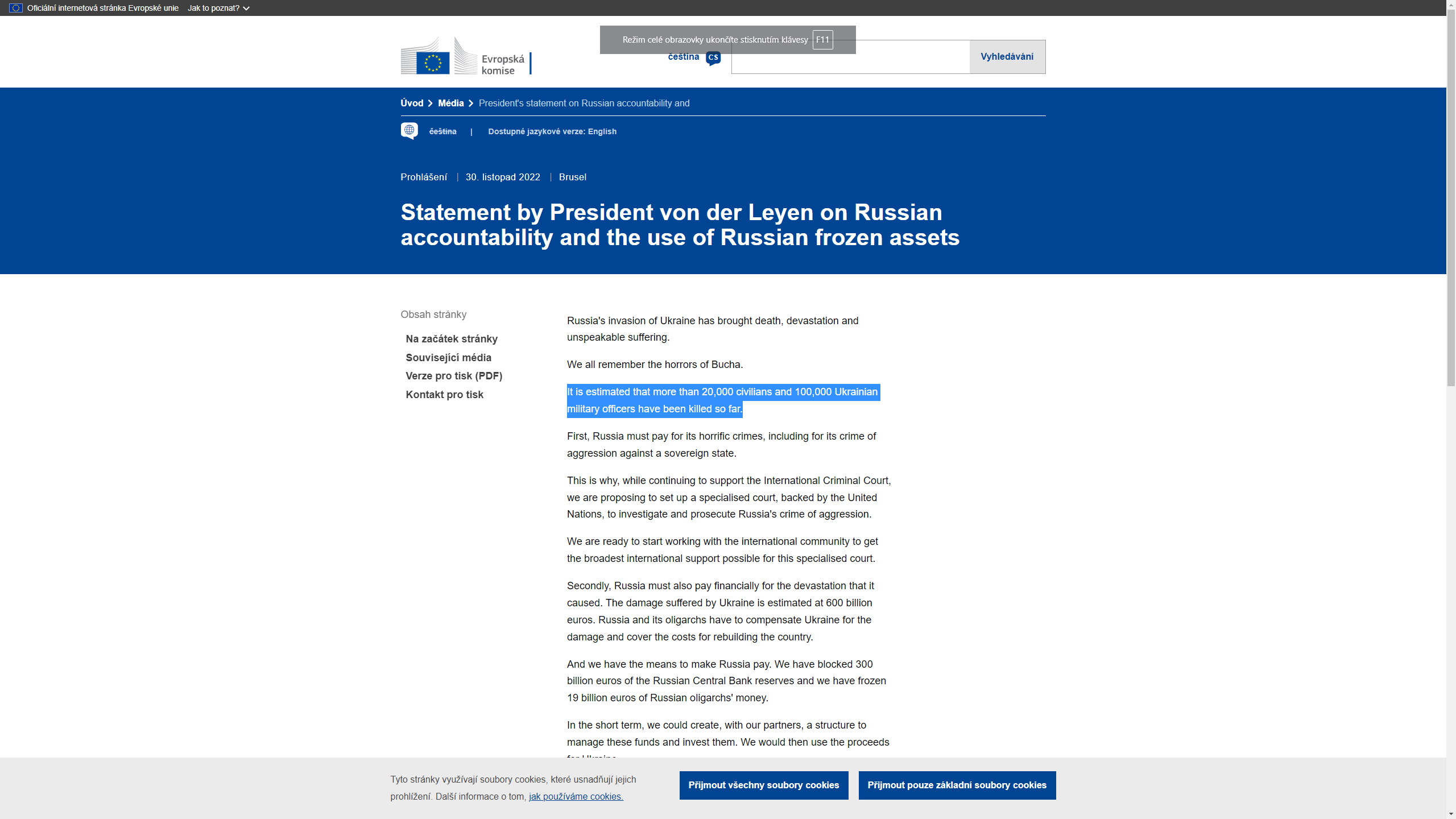 Prohlášení prezidentky von der Leyenové o ruské odpovědnosti a využití ruských zmrazených aktiv