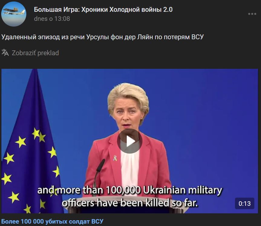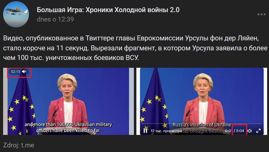 Evropští spojenci Ukrajiny se ve středu ocitli v režimu kontroly škod poté, co předsedkyně Evropské komise Ursula von der Leyenová zveřejnila video, ve kterém tvrdí, že v ruské válce bylo dosud zabito 100 000 ukrajinských vojáků – jen aby o několik okamžiků později toto tvrzení rychle stáhli. :blbec: