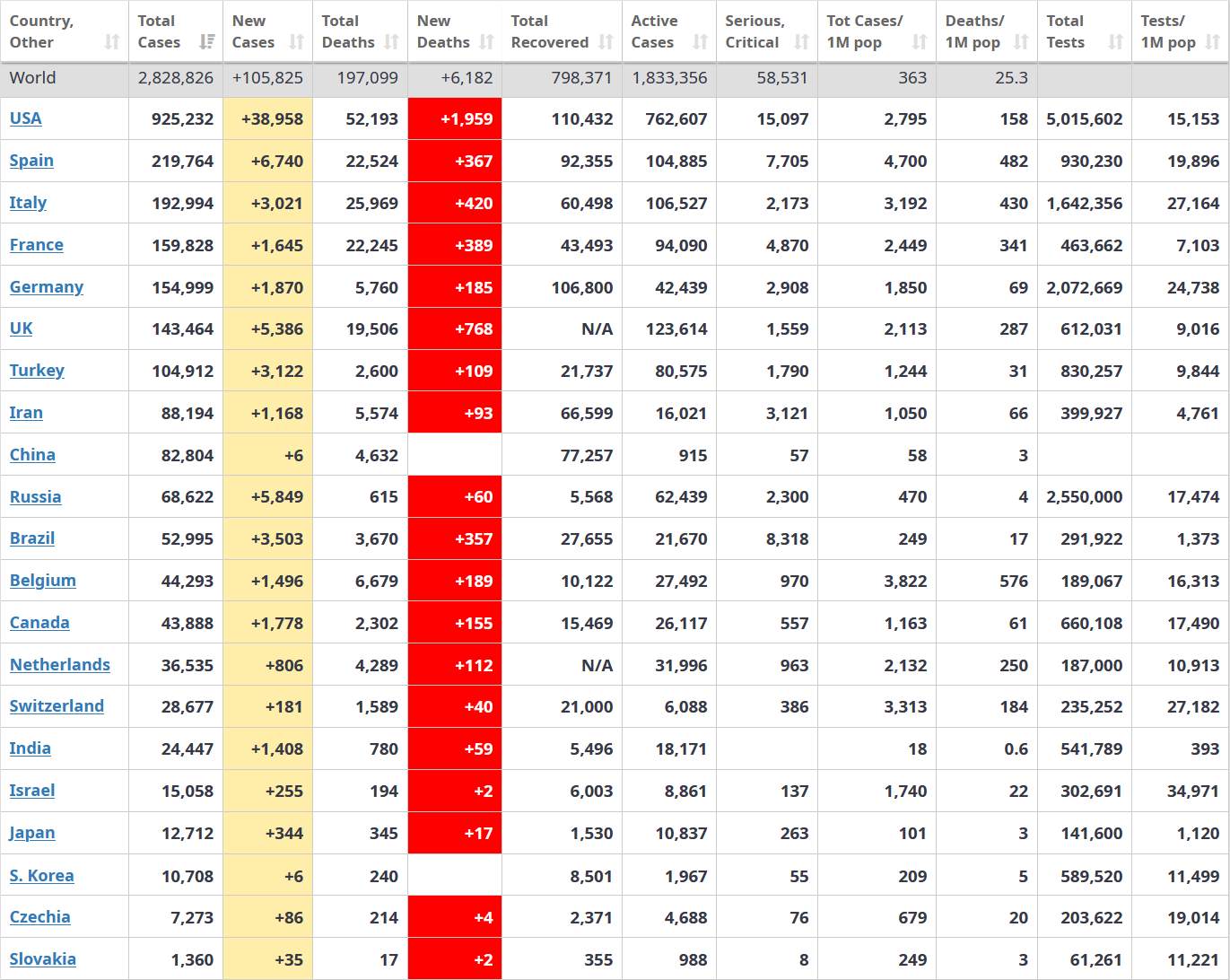 Za povšimnutie stoja obrovské (5000+) prírastky počtu chorých v Rusku v posledných dňoch. Zvlášť to vynikne po predchádzajúcich relatívne veľmi malých prírastkoch.