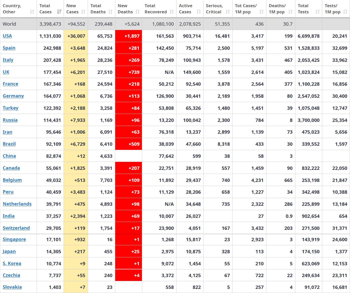 Čo dodať - čísla z Japonska si môžete pozrieť o príspevok vyššie. Počet testovaných a počet testov na milion obyvateľov zodpovedá skôr rozvojovým krajinám - s 1377 testami na milion Japonsko zaostáva za Jamaikou, Braziliou a Paraguayom a je pred Argentinou, Fiji, Sri Lankou a Marokom. V celkom počte testov (174 000) je za Rumunskom, Pakistanom, Thajskom z jednej strany a pred Norskom, Malajzijou a HongKongom z druhej strany. Ale Japonsko je 126 milionová krajina...Japonsko bylo v začátcích pandemie covid-19 státem, který se udával jako příklad. Na konci března i zde začal počet nakažených růst, avšak navzdory o poznání volnějším opatřením oproti řadě jiných zemí se drží počty nakažených i zemřelých relativně nízko. Dosavadní úspěch tkví zřejmě zčásti v tom, že se Japonci místo podání ruky zdraví úklonou a jsou zvyklí nosit roušky. Hlavně ale vláda zvolila přístup, při němž opatření směřují hlavně do konkrétní postižené oblasti k vytipování osob, které chorobu roznášejí. I nyní ale zaznívají obavy z toho, zda se onemocnění nerozšíří, mimo jiné proto, že v provozu zůstaly restaurace či veřejné lázně a hustota obyvatel se přes den na některých místech nijak neliší od normálu. Obavy vzbuzuje také to, že 80 procent kapacit nemocnic v některých oblastech je vytížených a mnohde se nedostává ochranných pomůcek.