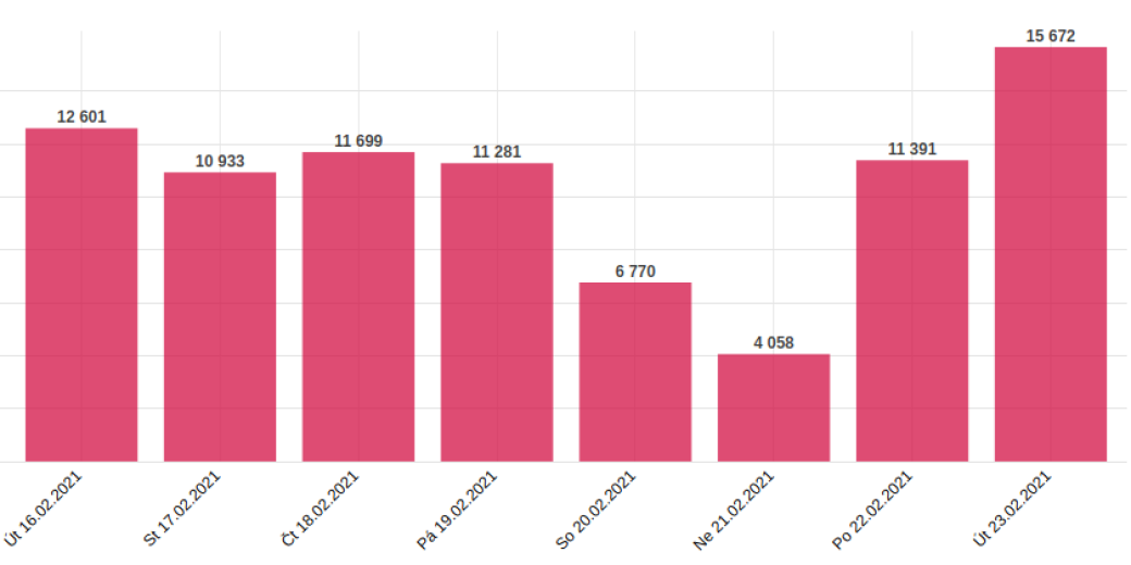 Velký posun v číslech za pouhý jeden den. V úterý laboratoře v Česku odhalily 15 672 nově nakažených koronavirem, v pondělí to přitom bylo 11 391 nových případů. Úterní výsledek je tedy nejhorší od 6. ledna a jde o 3071 více nakažených než minulé úterý. Vyplývá to z údajů na webu ministerstva zdravotnictví. V přepočtu nakažených na milion obyvatel je pak Česká republika nejhorší na světě.