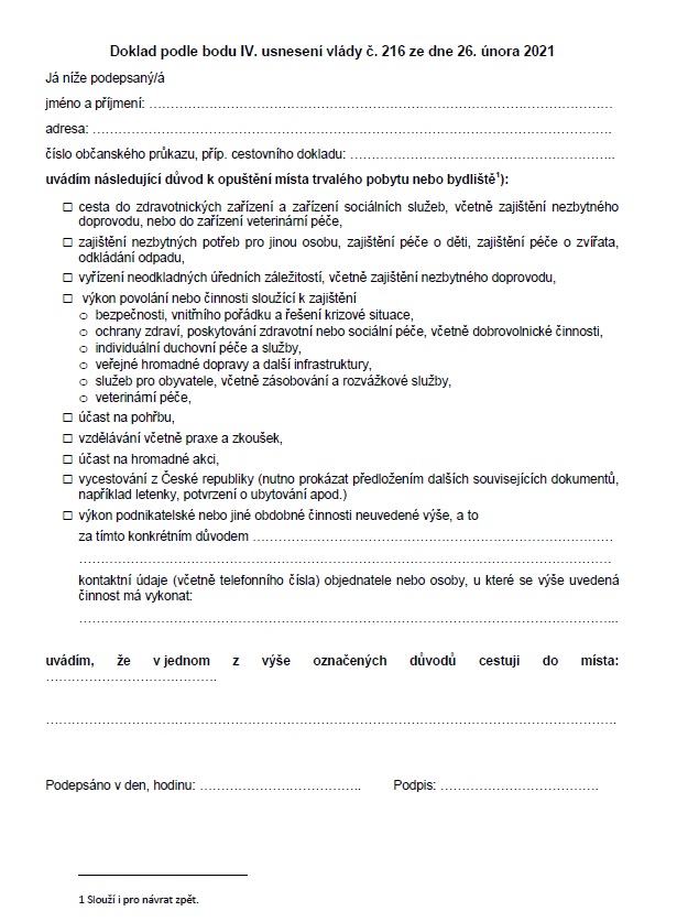 Od zítřka budeme potřebovat potvrzení, abychom mohli opustit okres. Nebylo zde již někdy něco podobného?