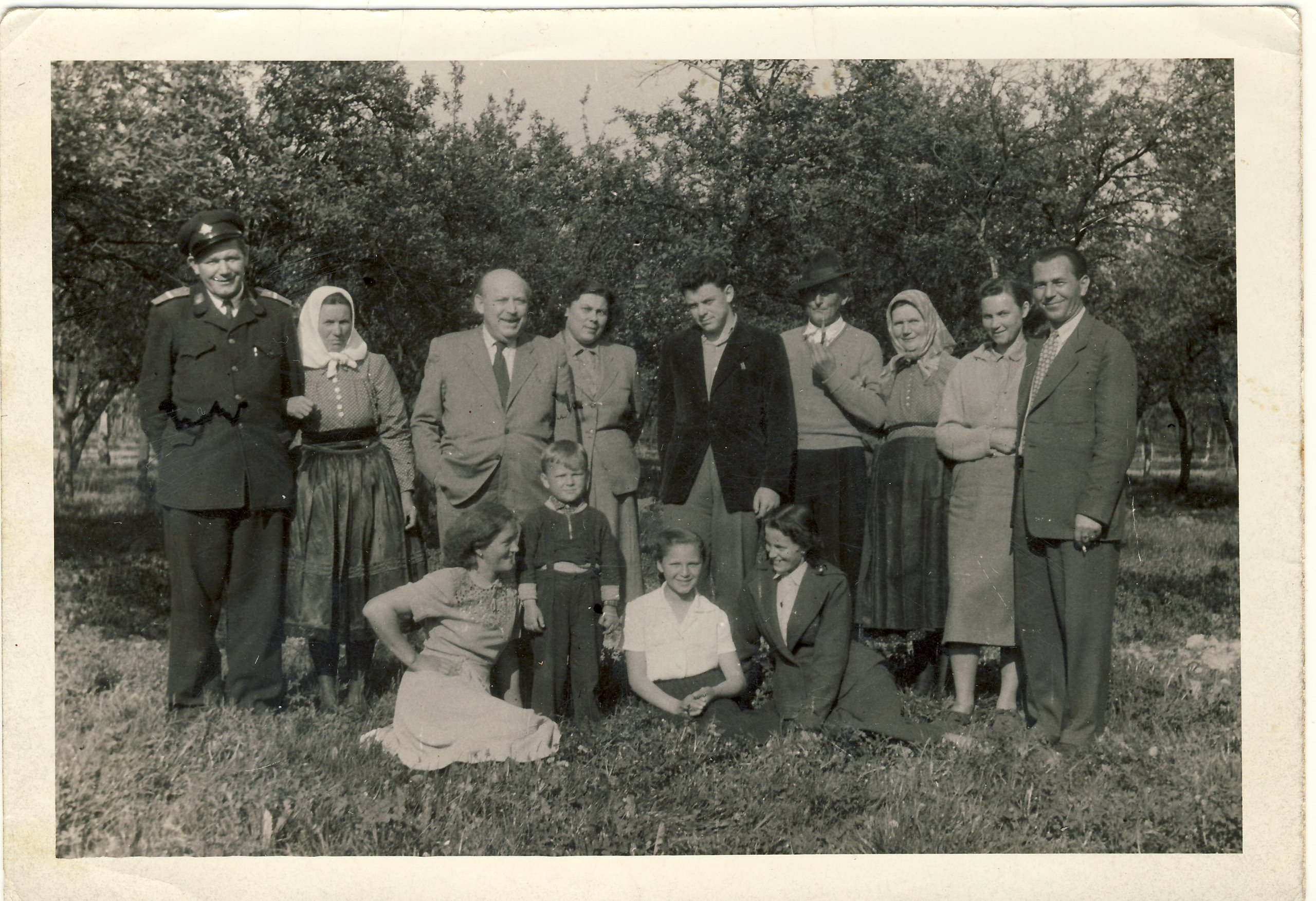 Typicka ukažka reality. Foto asi z roku 1952 z rodinnej oslavy. Nalavo policajt- babkym brat, ktory bol policajtom aj za Slovak štatu, vedla neho rodinny priatel židovsky lekar s manželkou a so synom, potom s fajkou dedo a vedla babka, a napravo slovensko-nemecki manželia Mokrí.