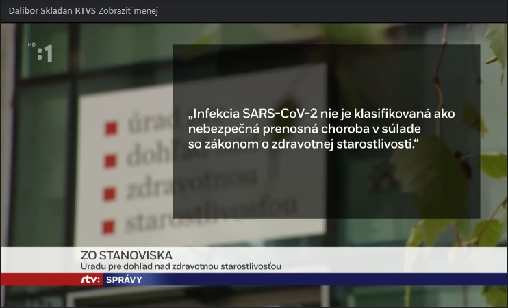 rovnako to potvrdil Urad pre dohlad nad zdr. starostlivostou – vid screen z vysielania RTVS