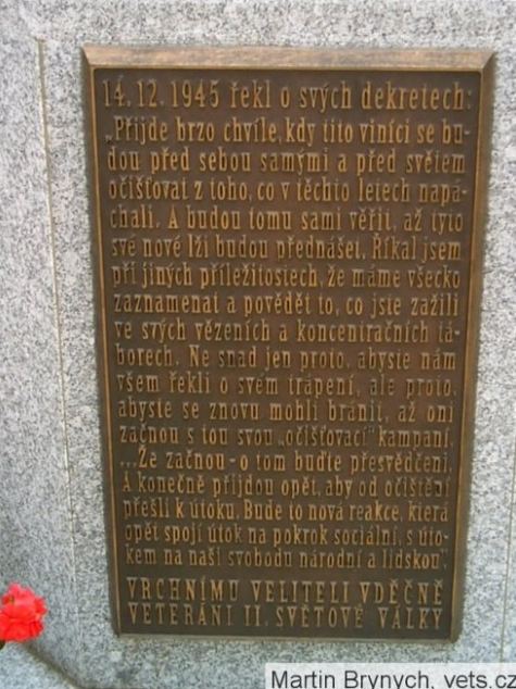 "Vážení spoluobčané, může se stát, že mé dekrety vydané z rozhodnutí vítězných mocností druhé světové války, budou odstupem času revanšisty prohlašované za neplatné.
