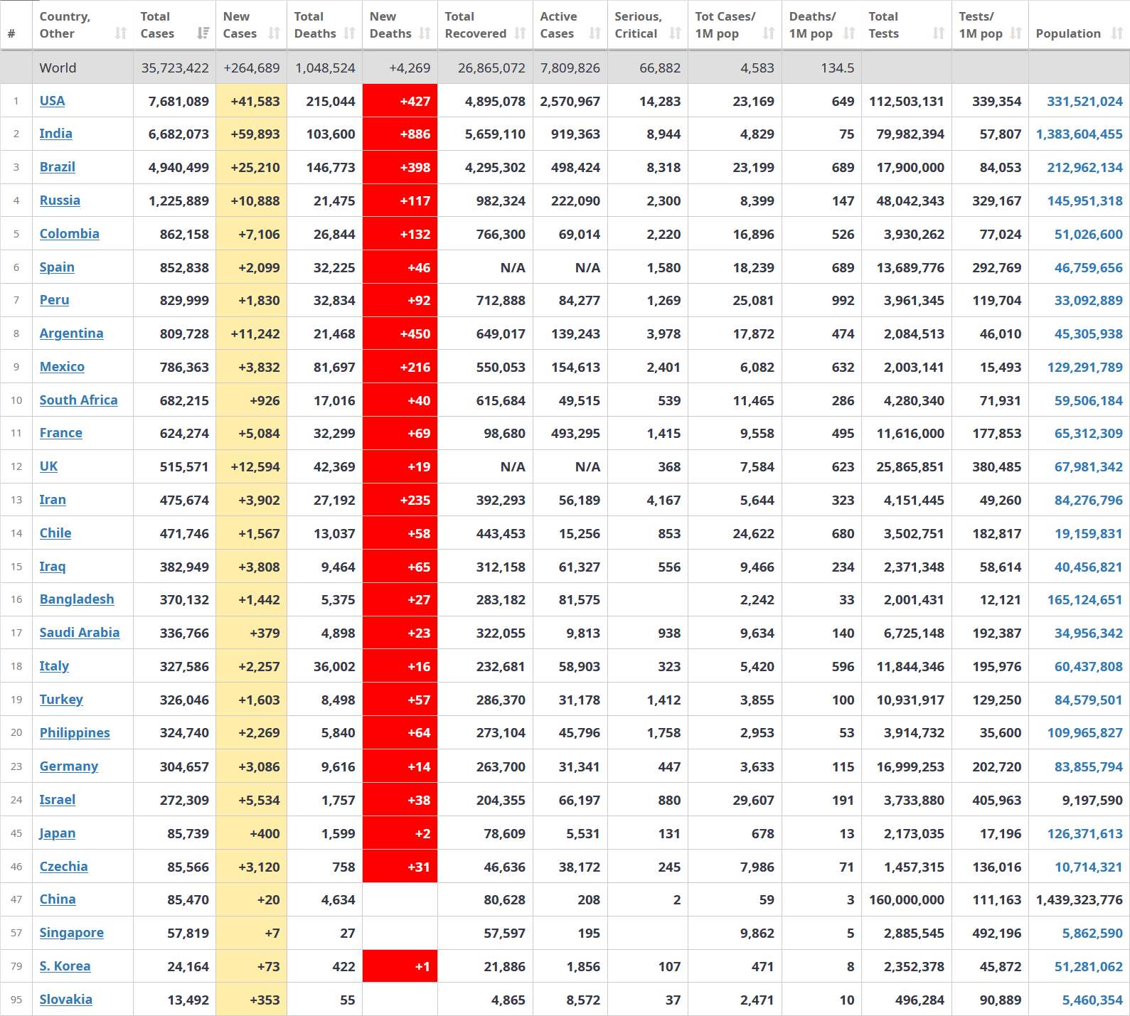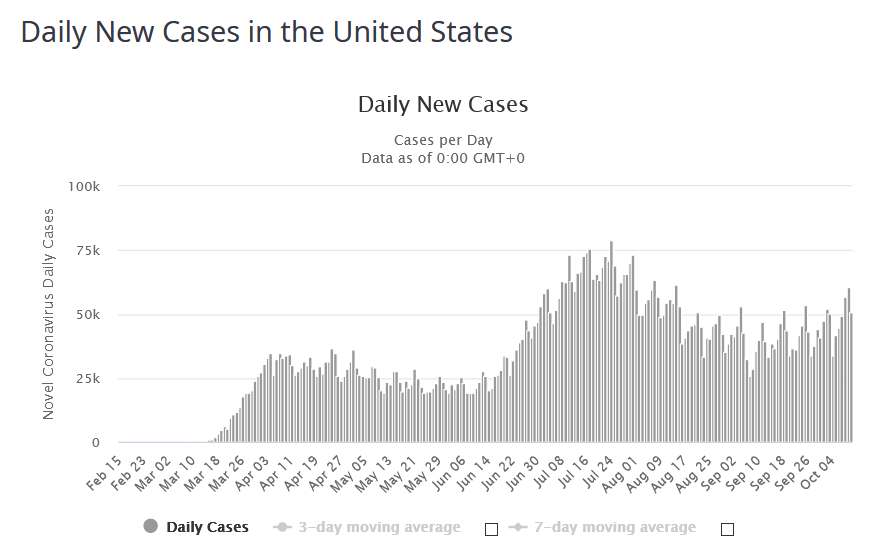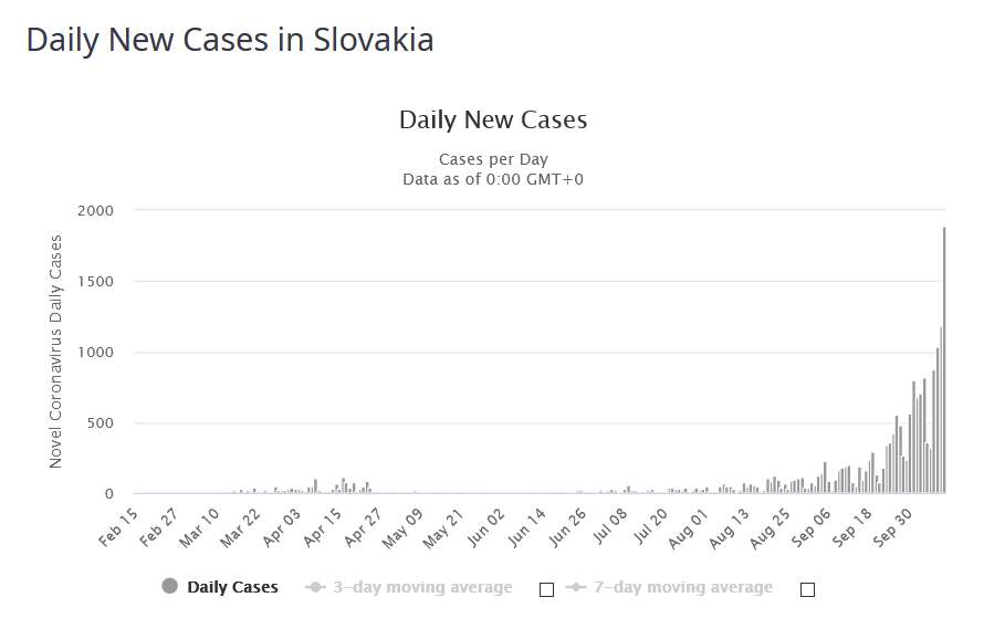 počty novo infikovaných k 10.10.2020