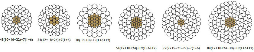 Dodám jen, že jednotlivé vrstvy jsou splétány protiběžně. U některých se ještě do středu lana přidává trubička pro optické vlákno...