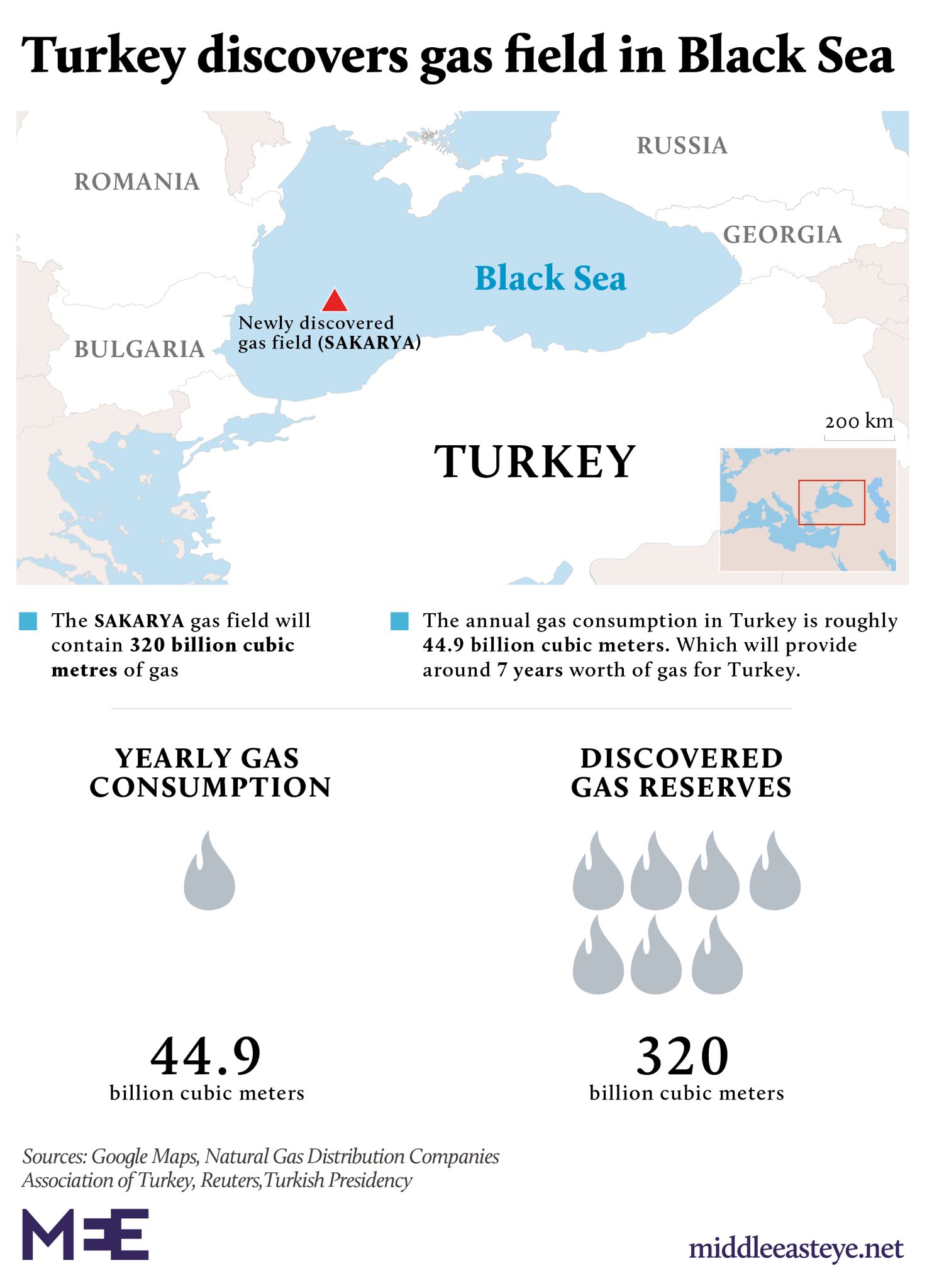 Turecko oznámilo, že při vrtech v Černém moři objevilo 320 miliard kubických metrů plynu. Prezident Erdoğan nyní oznámil, že bylo objeveno dalších 85 miliard kubických metrů plynu a že celkové množství dosáhlo 405 miliard kubických metrů.