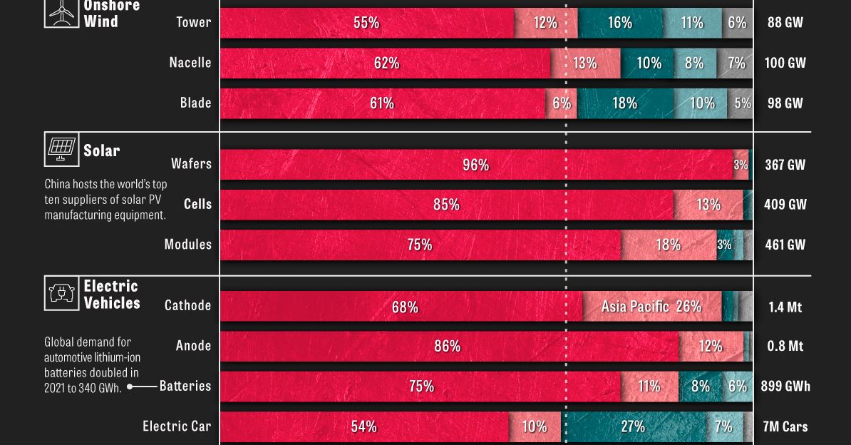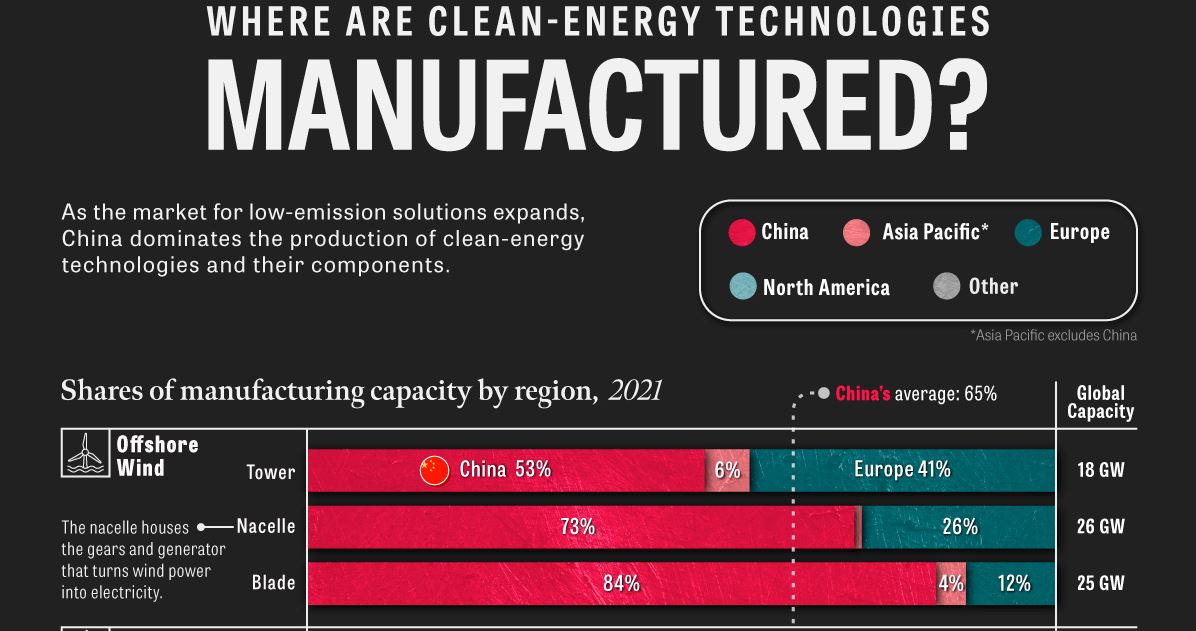 Když se podíváme na to, kde se vyrábí technologie čisté energie a jejich komponenty, jedna věc je zcela jasná: Čína dominuje tomuto odvětví.