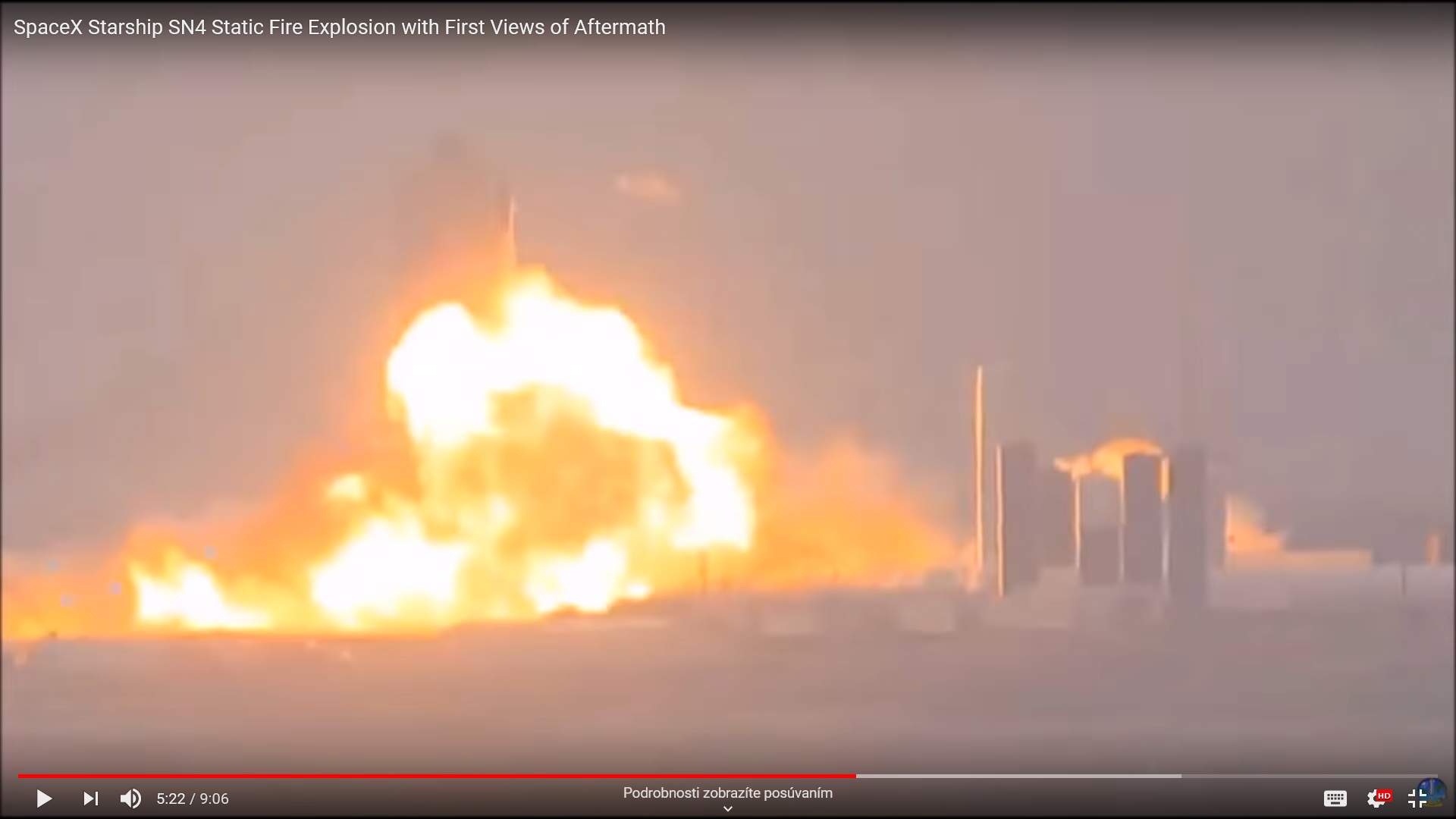Edit - horák je v tom zrejme nevinne, je relatívne ďaleko - cca 150 metrov. Na snímkoch je to dosť skreslené teleobjektívom. Z iného uhlu sa to javí, že výbuch začal "pod" nádržou (horák je zhruba za prostrednou nádržou vpravo). Ak by výbuch začal od horáku, bolo by vidno vzplanutie a akcelerovaný pohyb ohnive "vlny/steny". Naopak videá ukazujú masívny "fireball", ktorý sa objavuje náhle - takže výbuch začal niekde vo "vnútri" konštrukcie nádrže a viditeľným navonok sa stáva až pri deštrukcii stien. Výbuchy takýchto plynovo-kyslíkových zmesí totiž obvykle prebiehajú relatívne pomali - detonačná rýchlosť je za ideálnych podmienok maximálne 2000-2500m/s, v meracej "pokusnej detonačnej štole" 1700-1800m/s, ale v reálnych neoptimálnych často len okolo 600-800m/s (bohate stačí na rozsiahlu deštrukciu - zdetonuje totiž obrovský objem) video - pokusný beh motoru v 0:05, erupcia 1:51 a následne výbuch 2:21 - opäť potom v 5:21