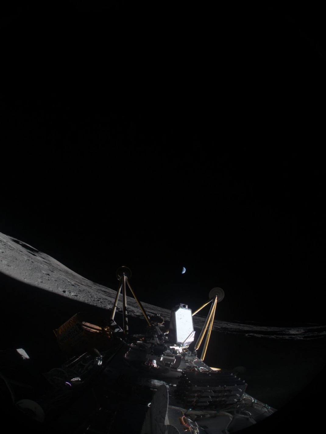 Fotka ležícího landeru Athena na povrchu Měsíce
