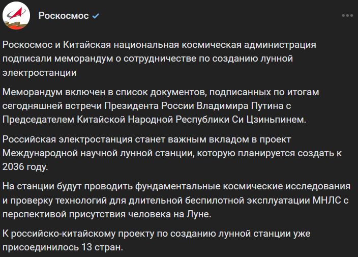 Memorandum je súčasťou zoznamu dokumentov podpísaných po dnešnom (štvrtok 08.05.2025) stretnutí ruského prezidenta Vladimira Putina (Владимира Путина) a prezidenta Čínskej ľudovej republiky Si Ťin-pchinga. Ruská elektráreň sa stane dôležitým príspevkom k projektu Medzinárodnej vedeckej lunárnej stanice (Международной научной лунной станции = МНЛС), ktorej zriadenie sa plánuje do roku 2036. Na stanici sa bude vykonávať základný vesmírny výskum a testovať technológie pre dlhodobú bezpilotnú prevádzku MNLS (МНЛС) s perspektívou prítomnosti človeka na Mesiaci. K rusko-čínskemu projektu lunárnej stanice sa už pripojilo 13 krajín.