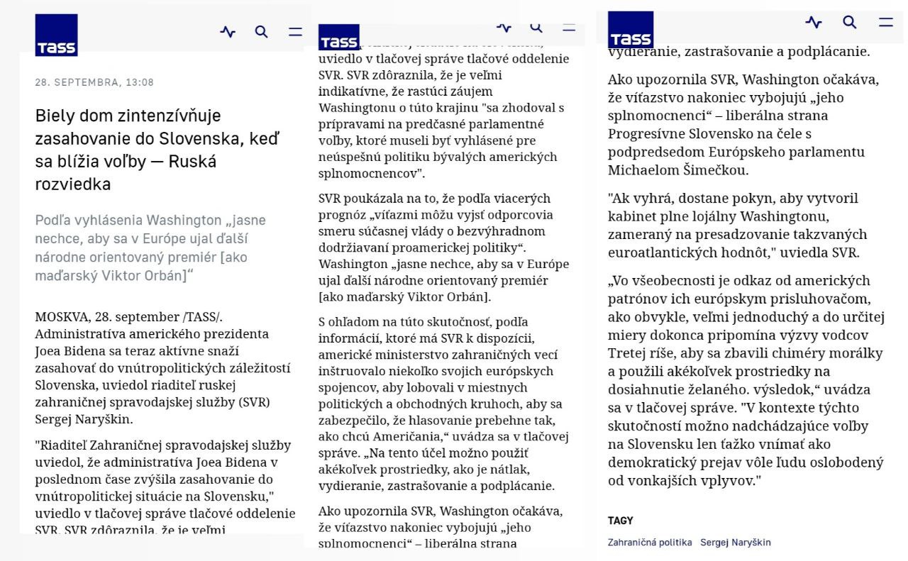 Sergej Naryškin: americká administratíva zintenzívňuje snahy o ovplyvnenie volieb na Slovensku.