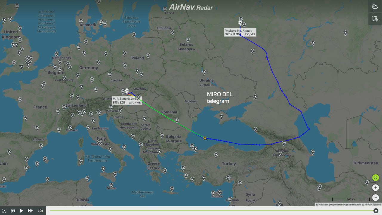 Leteli zo Štefánika, cez Maďarsko, Rumunsko a teraz sú nad Čiernym morom, potom cez Gruzínsko kde preletia Kaukaz a cez Dagestan nad Kaspické more a ponad Astrachanskou oblasťou, Volgogradom, sem k nám a pristane vo Vnukove o 21:30 nášho Moskovského času - isteže keď Nacisti niečo nevyparatia.