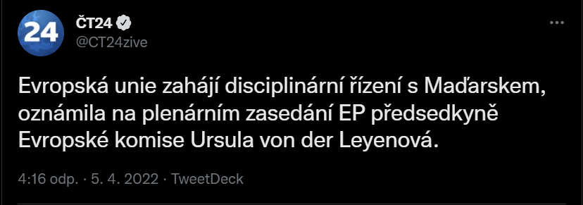 V této válce byla Ukrajina napadena a Rusko je agresorem. Proto podporujeme Ukrajinu a zahájili jsme největší operaci humanitární pomoci v historii Maďarska. Proporcionálně jsme přijali největší počet uprchlíků a poskytujeme pomoc těm, kteří ji potřebují. Pomůžeme ukrajinským uprchlíkům. Ponecháváme nyní stranou skutečnost, že v minulosti byla Maďarům v Zakarpatí porušována jejich práva. A také necháváme stranou skutečnost, že ukrajinský prezident a jeho vláda otevřeně zasahovali do maďarské volební kampaně a podporovali naše protivníky. Přes to všechno se Ukrajinci mohou na Maďarsko a maďarskou vládu spolehnout.