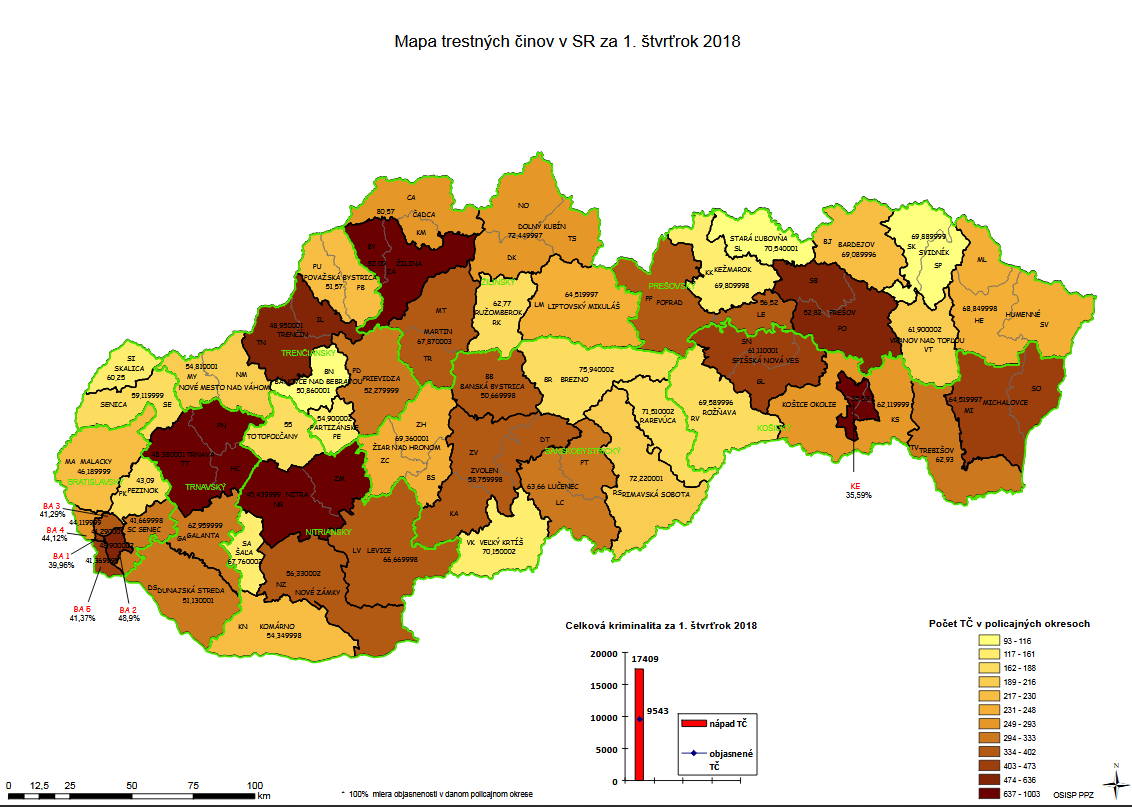Zdroj http://www.minv.sk/?mapy_2018 (PDF súbory za 1Q 2018) + ešte Mapa ekonomických trestných činov + Mapa majetkových trestných činov