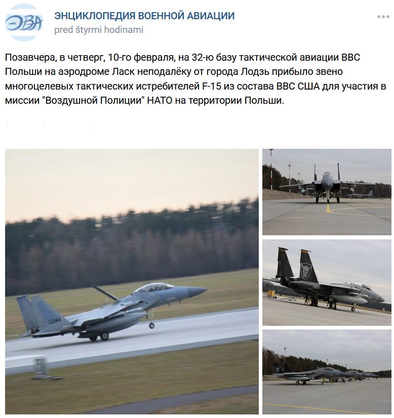 https://www.usafe.af.mil/News/Press-Rel ... e-defense/Stíhací letouny amerického letectva přiletí 10. února 2022 na leteckou základnu Łask v Polsku, aby posílily kolektivní obranu NATO a podpořily misi NATO Air Policing.
