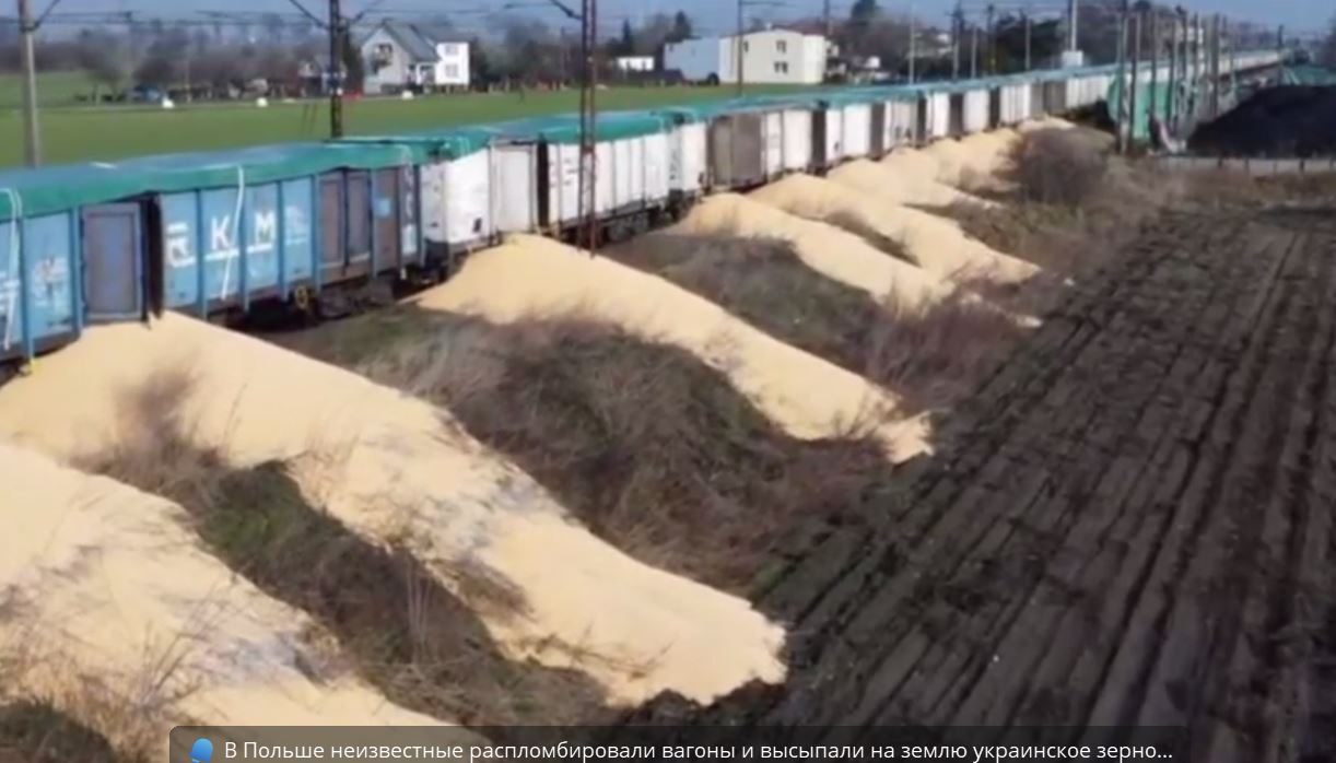 V Poľsku neznámi ľudia odpečatili vagóny a vysypali ukrajinské obilie na zem...