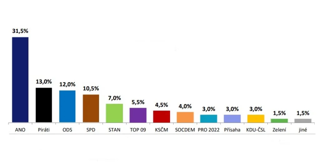 Čtvrtou nejsilnější stranou ve volbách by byla SPD se ziskem 10,5 procenta hlasů. Pátí by skončili Starostové, kterým by dalo hlas sedm procent voličů. Do Sněmovny by se dostala ještě TOP 09 se ziskem 5,5 procenta.