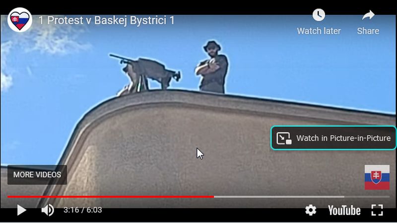 screenshot z videa z Banskej Bystrice, ktoré už jutub stihol vymazať - ťažký guľomet na streche