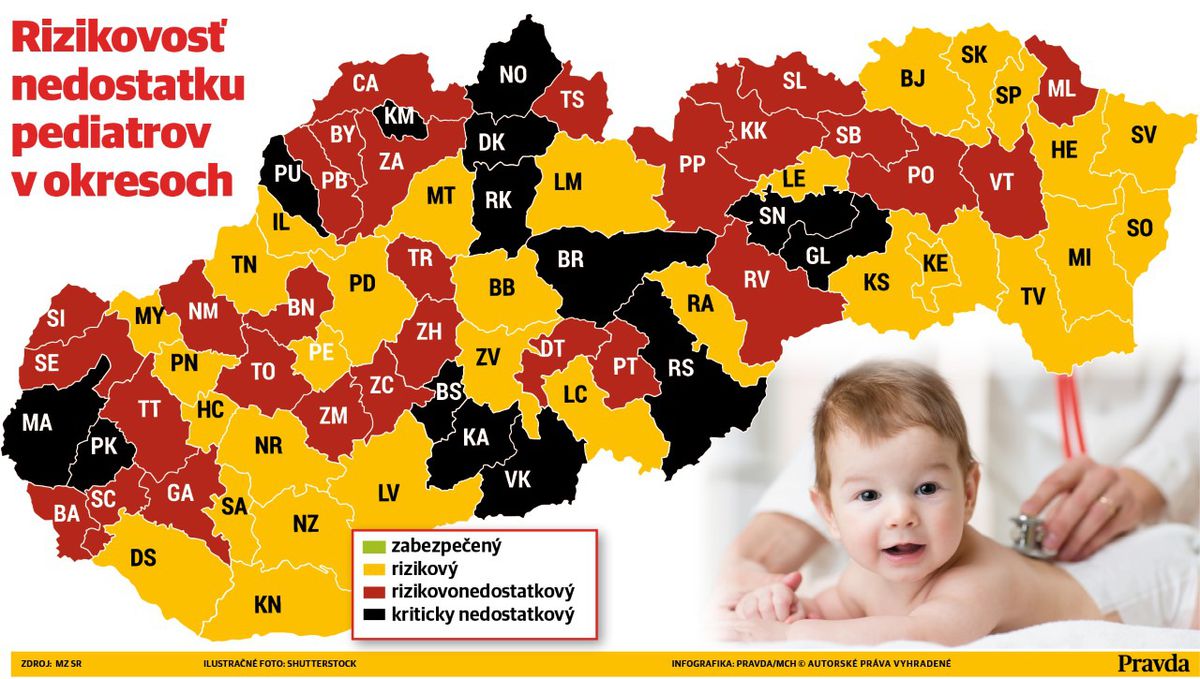 Medzi najviac kriticky nedostatkové okresy v odbornosti pediatria patria okresy Krupina, Veľký Krtíš, Gelnica a Malacky.