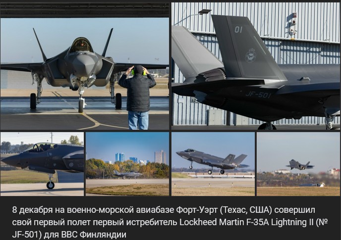 Zdroj https://vk.com/wall-123538639_4762215 z 10.12.2025Pondelok 08.12.2025 absolvoval na námornej leteckej základni Fort Worth (Texas, SŠA) svoj prvý let prvé lietadlo Lockheed Martin F-35A Lightning II (č. JF-501) pre VVS Fínska