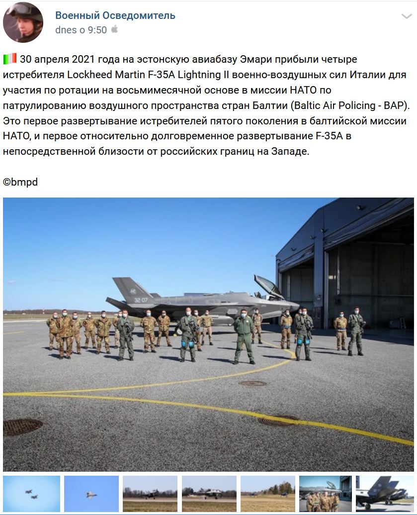 V piatok 30.04.2021 prileteli na leteckú základňu Ämari 4 lietadlá Lockheed Martin F-35A Lightning II Talianskeho letectva = ide o klasickú 8-dňovú rotáciu NATO Baltic Air Policing = Toto je 1. nasadenie lietadiel 5. generácie v pobaltskej misii NATO a 1. relatívne dlhodobé nasadenie F-35A v tesnej blízkosti ruských hraníc na západe.