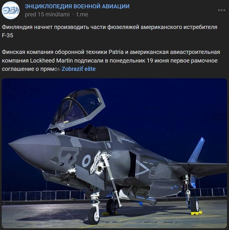 Fínsko začne vyrábať časti trupu pre americké lietadlá F-35