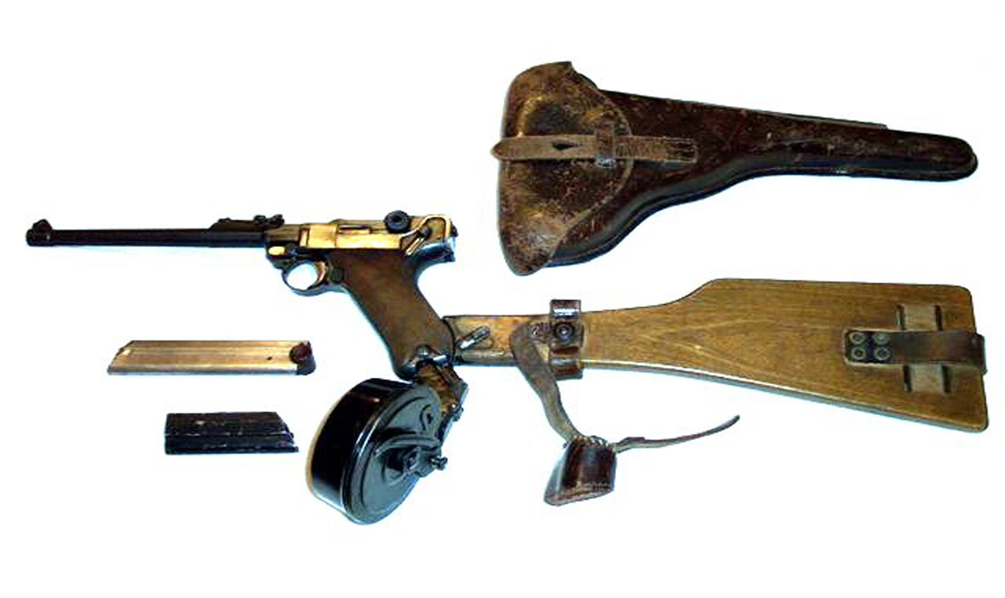 Poměrně známá je pažba na Luger. Používala se během velké války.