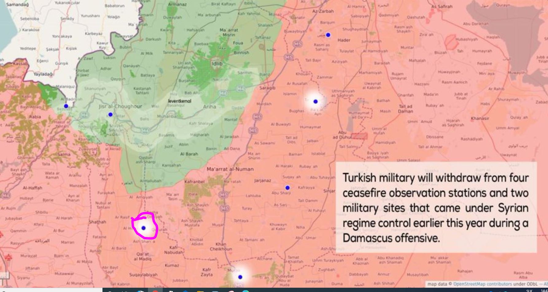 Televízna stanica Sýria so sídlom v Istanbule uviedla, že turecké jednotky sa stiahnu z postu Shir Maghar na novozaložený post blízko mesta Qoqfin na juhozápade Idlibu.