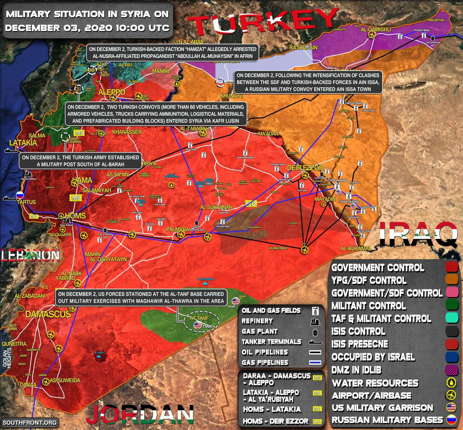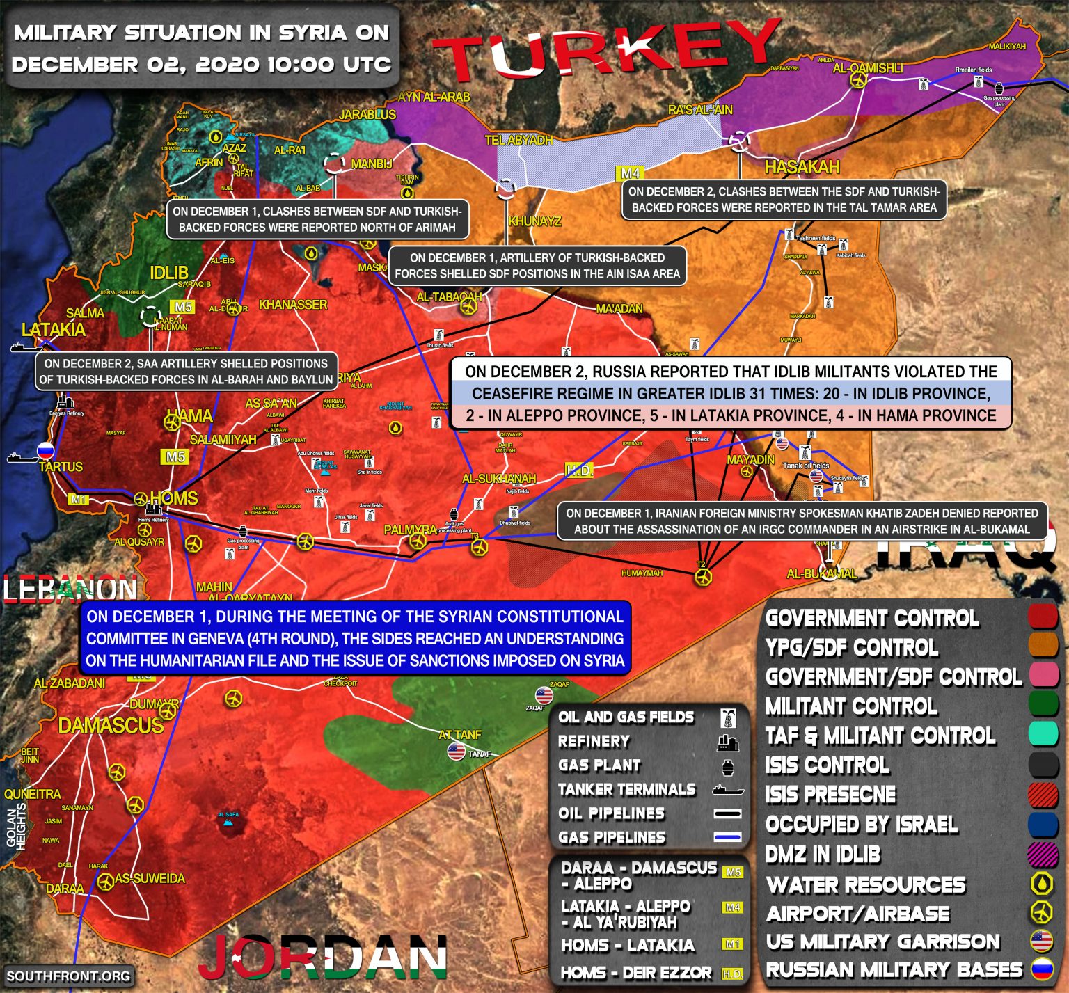 Vojenská situácia v Sýrii 2. decembra 2020 (aktualizácia mapy)
