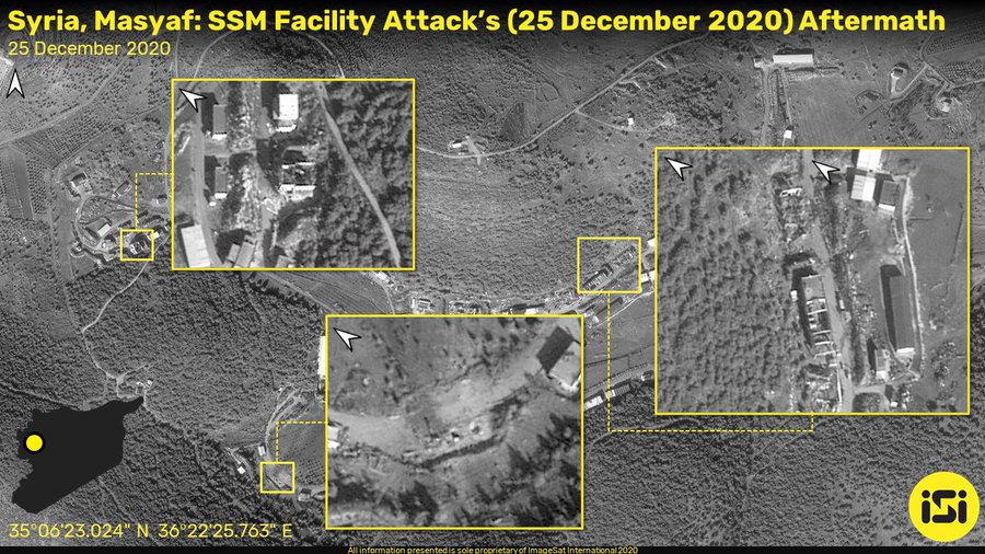 Boli zverejnené satelitné snímky, ktoré ukazujú následky piatkového náletu na sýrsky Masyaf.