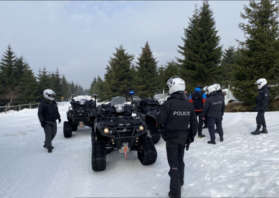 Kontrola lyžařů v Jizerkách. Policisté se proháněli po lese na čtyřkolkách