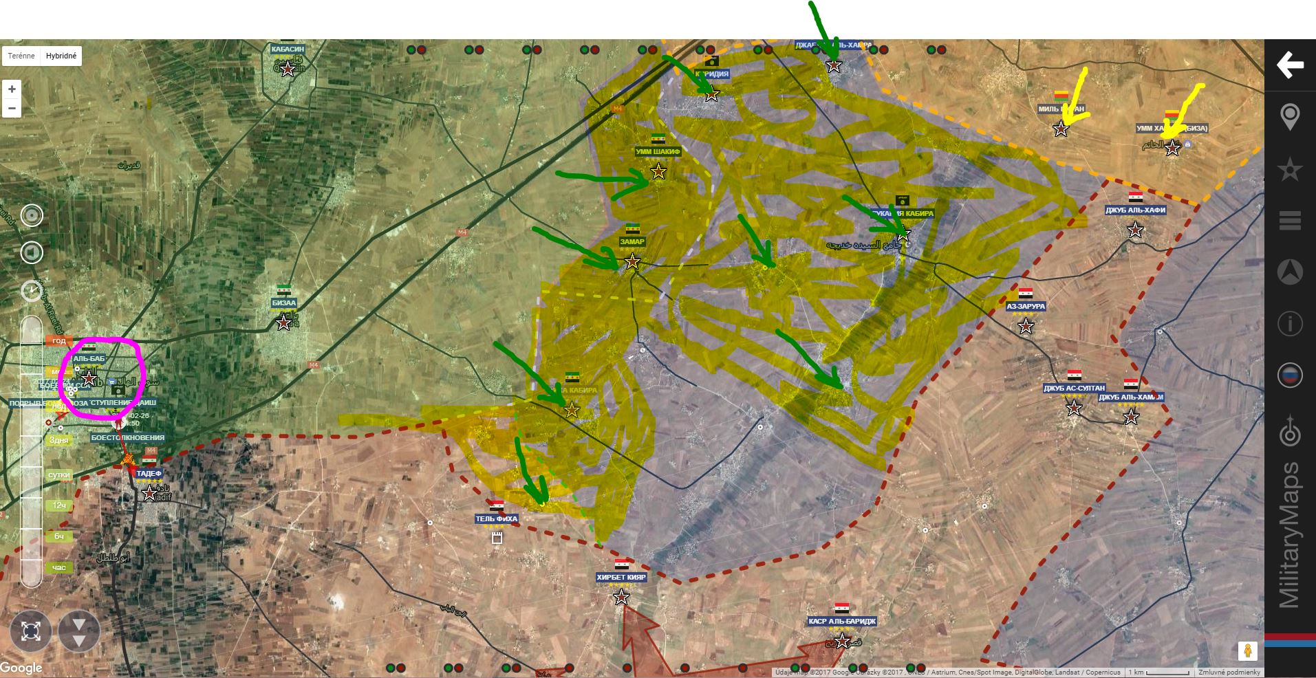 Více zde: https://cz.sputniknews.com/svet/2017022 ... i-damasek/„Armáda zahájila vojenskou operaci v okolí farem Barzi a ve čtvrti Kabun. Prozatím se podařilo postoupit na území protivníka do vzdálenosti 700 metrů. Pouliční boje pokračují," řekl zdroj agentury.
