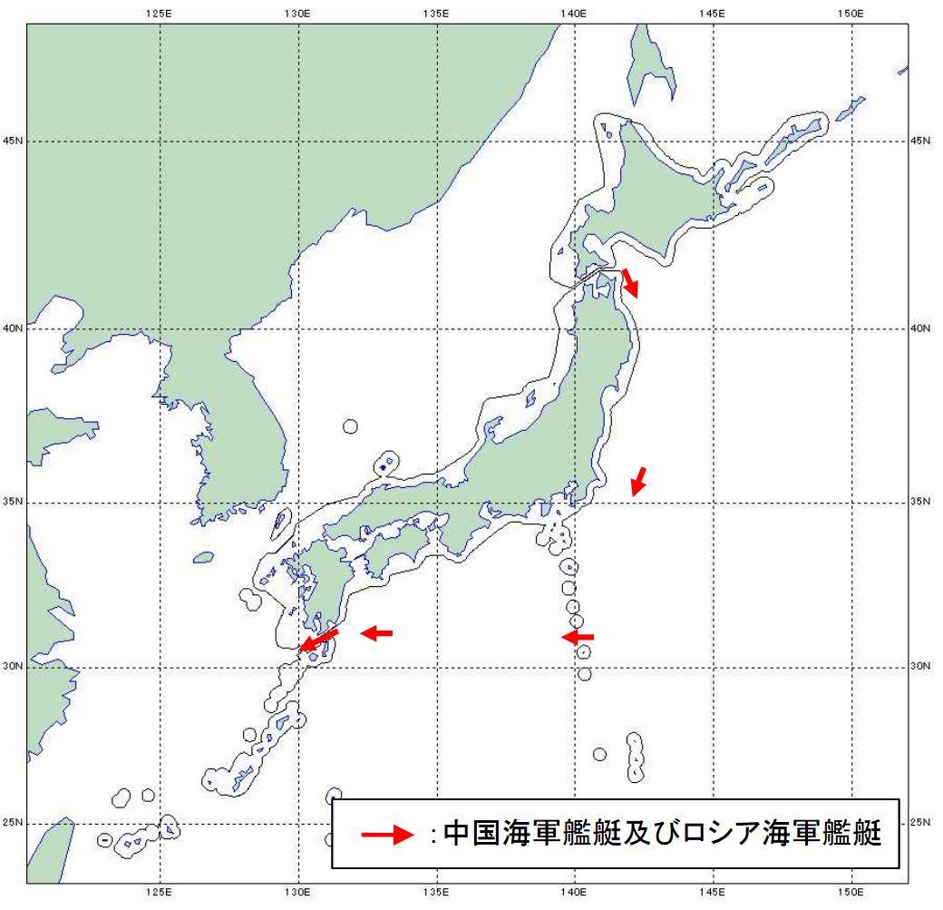 Ráno 21.10.2021 preplávala zostava lodí ruského a čínskeho námorníctva, ktorá sa plavila na juh vo vodách Tichého oceánu, úžinou medzi ostrovmi Šimizu a Tórišima súostrovia Izu, ktoré patria Japonsku.