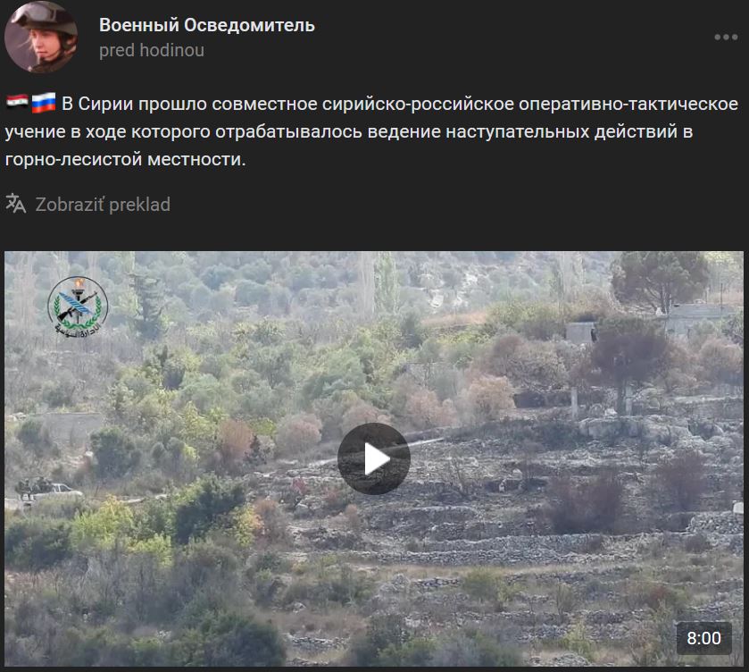V Sýrii sa uskutočnilo spoločné sýrsko-ruské taktické cvičenie s cieľom precvičiť útočné operácie v hornatom a zalesnenom teréne.