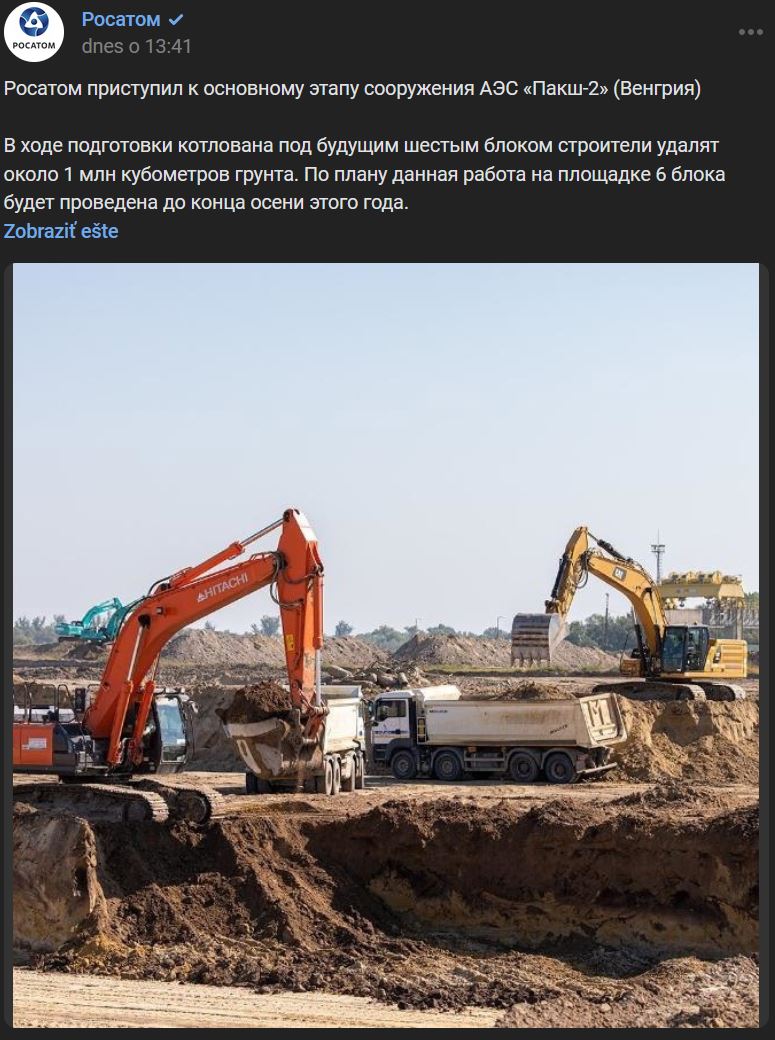 "Očakávame, že prvý betón sa vyleje koncom budúceho roka 2024 - začiatkom roka 2025," povedal šéf Rosatomu po návšteve staveniska jadrovej elektrárne Paks-2 v Maďarsku. Minulý mesiac (08/2023) sa začala hlavná etapa výstavby elektrárne Paks-2. V súčasnosti sa na stavenisku dokončila výstavba betonárne a prebieha výstavba dielne na výrobu výrobkov pre armovanie. "JE Paks-2 je prvým ruským projektom v EÚ. Získanie stavebnej licencie potvrdilo súlad projektu s maďarskými a európskymi bezpečnostnými normami," zdôraznil šéf Rosatomu.