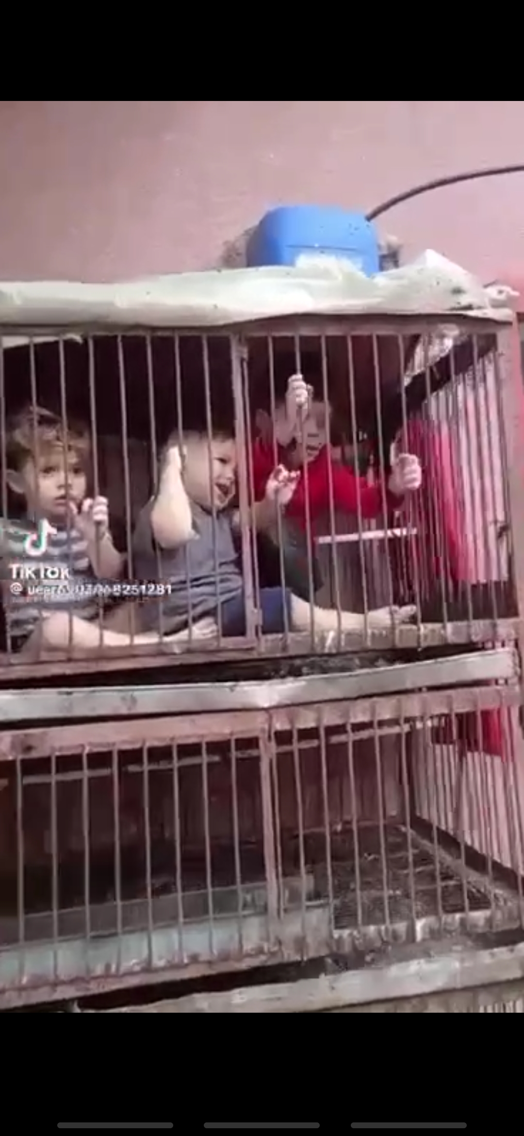 Zábery ukazujú židovské deti v klietkach, ktorým sa Palestínčania vysmievajú.