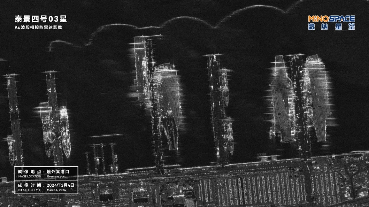Snímky letadlových lodí a válečných plavidel na americké námořní základně získané z čínského komerčního radarového průzkumného satelitu Taijing-4-03