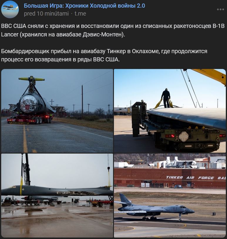 VVS SŠA vyradilo zo skladu a obnovilo jeden z vyradených raketových nosičov B-1B Lancer (uložený na leteckej základni Davis-Monthan). Bombardér dorazil na leteckú základňu Tinker v Oklahome, kde bude pokračovať proces jeho vrátenia VVS SŠA.