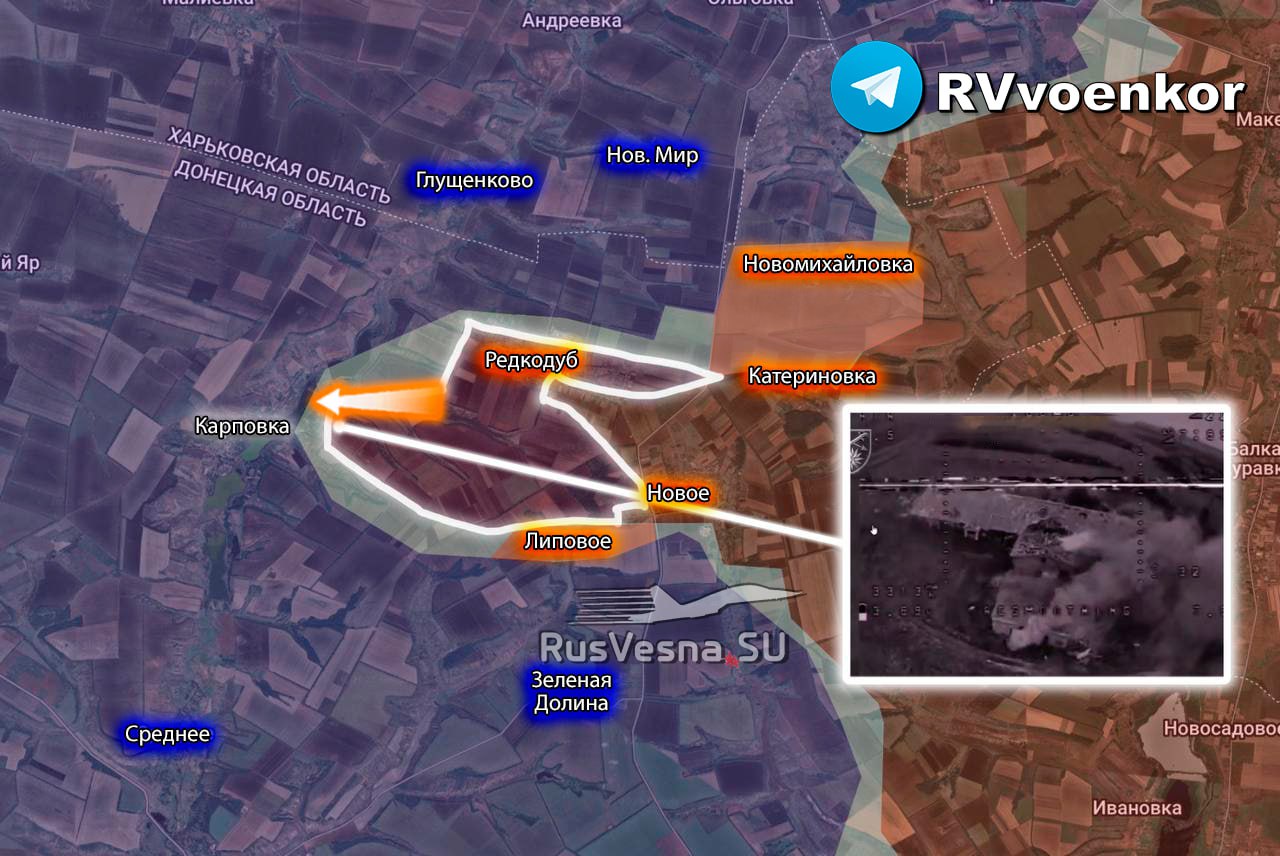 ▪️ Ruské vojská aktívne postupujú smerom na Krasnoliman, obsadili rozsiahly úsek územia medzi Redkodubom, Lipovým a začali útok na Karpovku.