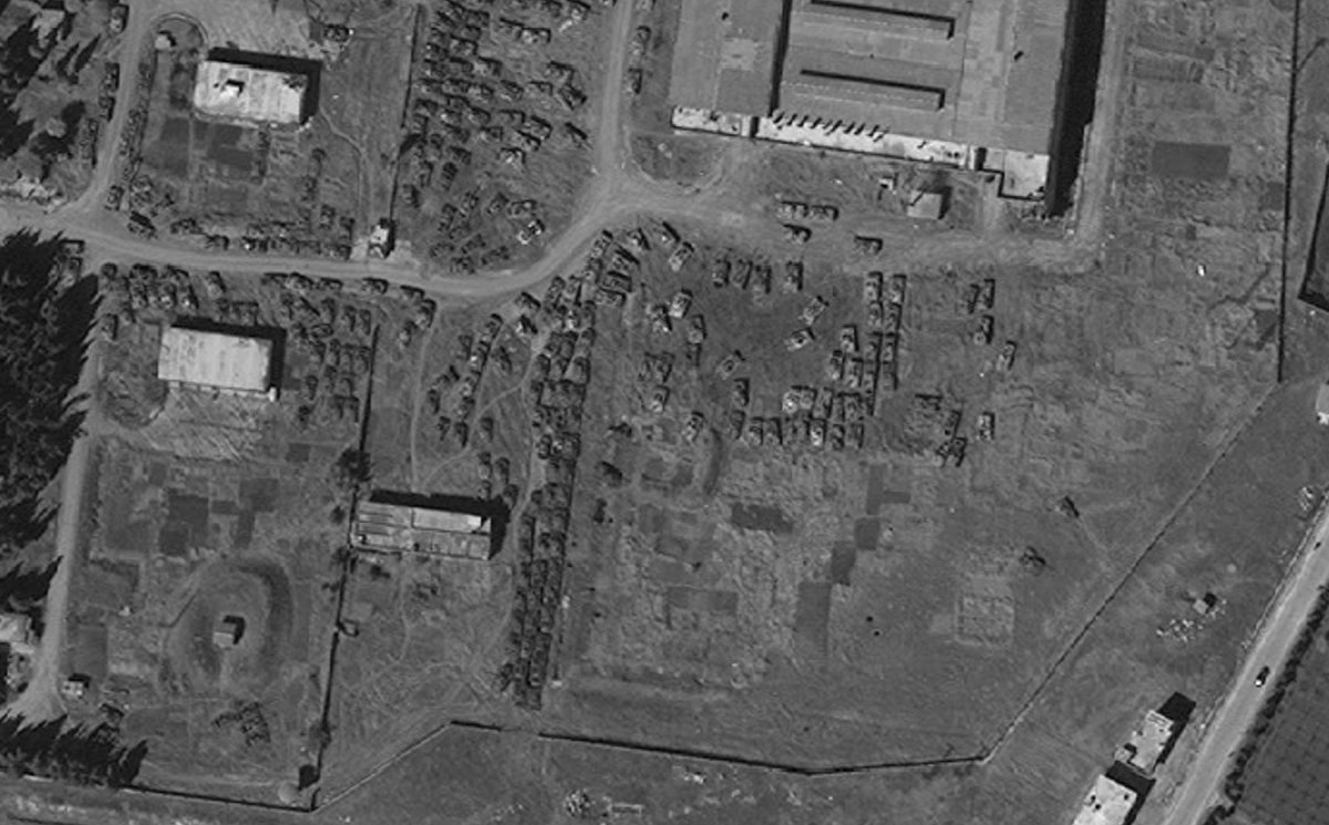 Opravářská základna SAA. Celkem bylo napočítáno zhruba tisíc různých obrněných vozidel