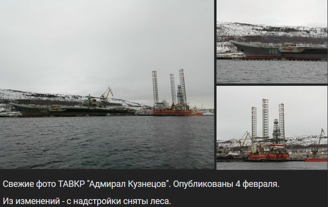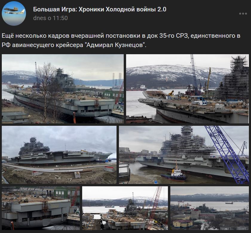 Práce na oprave a modernizácii ťažkého lietadlového krížnika "Admiral flota Sovietskeho Zväzu Kuznecov" (Адмирал флота Советского Союза Кузнецов) sú už nejaký čas pozastavené, uviedli pre Izvestija "informované zdroje". V blízkej budúcnosti zástupcovia Hlavného velenia námorníctva a Zjednotenej lodiarskej korporácie (OSK) prijmú rozhodnutie o tom, či je účelné pokračovať v týchto prácach na Admiralovi Kuznecovovi a vrátiť ho do flotily, uviedli zdroje. „Admiral Kuznecov“ je v oprave od roku 2017.