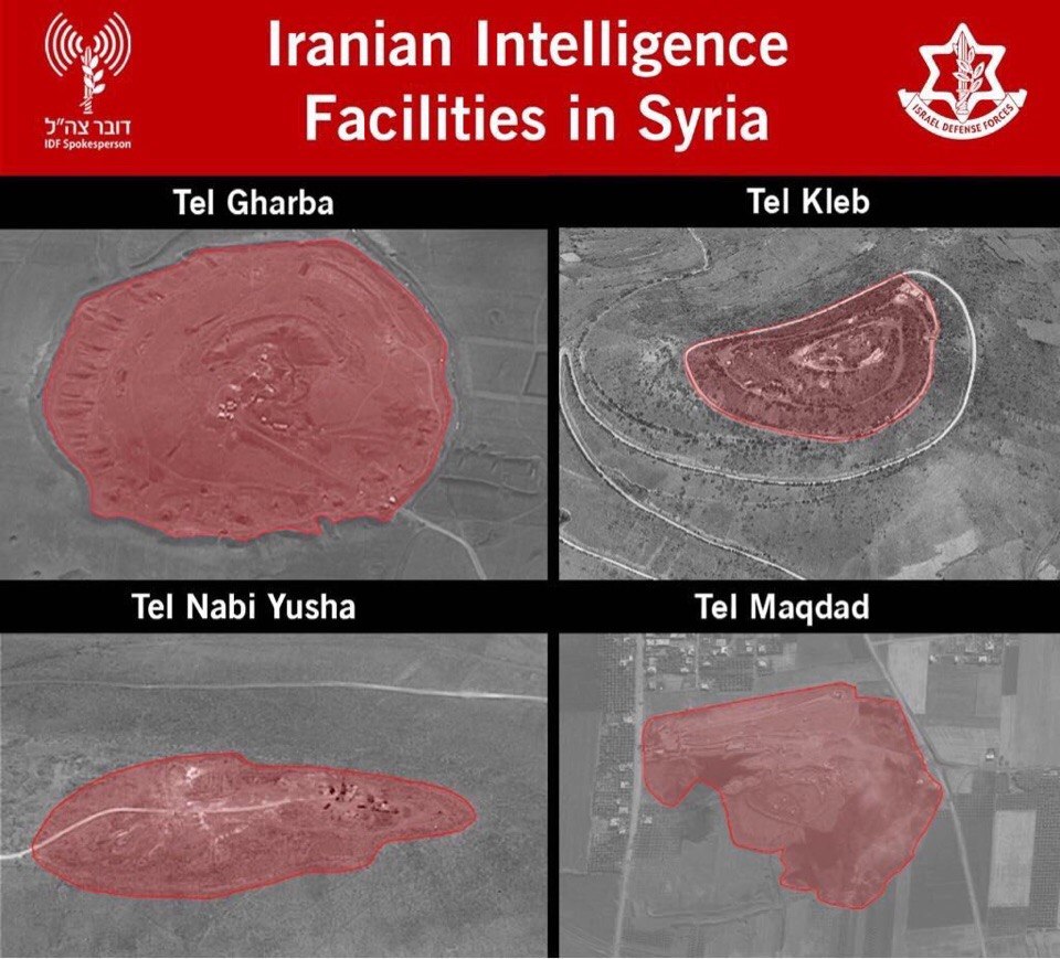 Satelitní fotky iránských objektů v Sýrii, které IDF (izraelské letectvo) a na které Izrael v noci zaútočil 09.05.2018