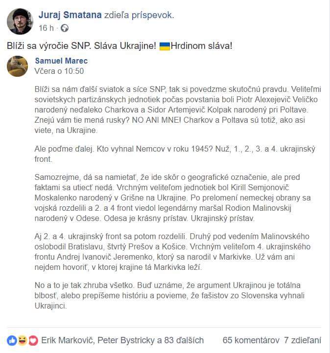Smatana ako ucitel dejepisu urcite vsetko vie. Nie je iny mozny zaver, ze mu nacizmus nevadi, ak je na spravnej strane. Na socialnej sieti je diskusia k teme tu