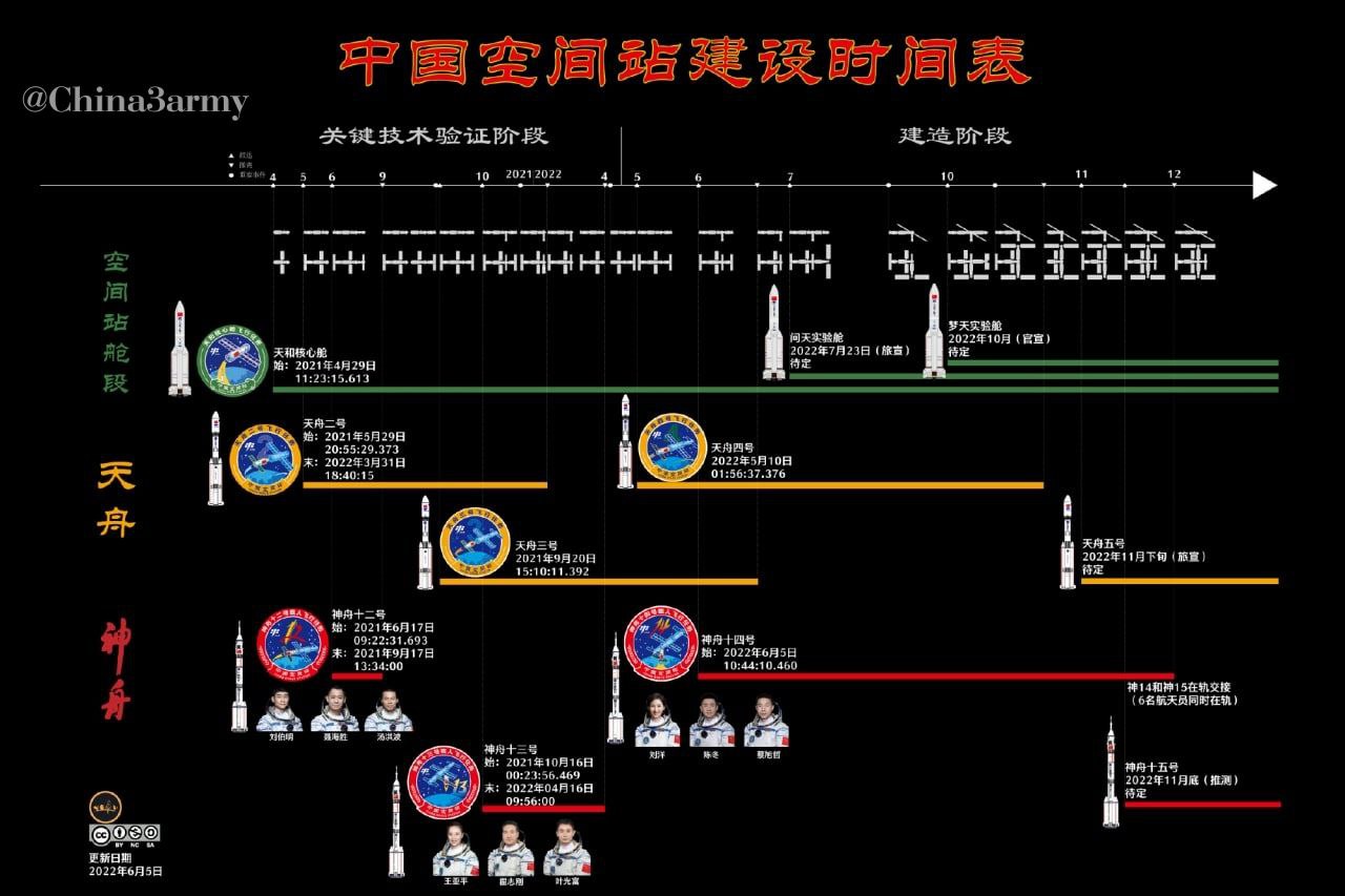Aktualizovaný harmonogram výstavby čínské vesmírné stanice.¨