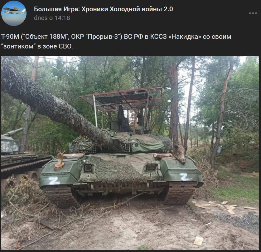 Т-90М ("Объект 188М", ОКР "Прорыв-3") ВС РФ в КССЗ «Накидка» со своим ‘’зонтиком’’ в зоне СВО.