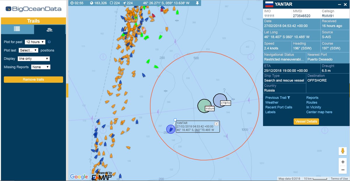 12. března poblíž Argentiny, 12:45 místního času. OIC "Yantar" vyplouvá z Montevidea do Buenos Aires. Video bylo pořízeno z panamského tankeru CABO PILAR